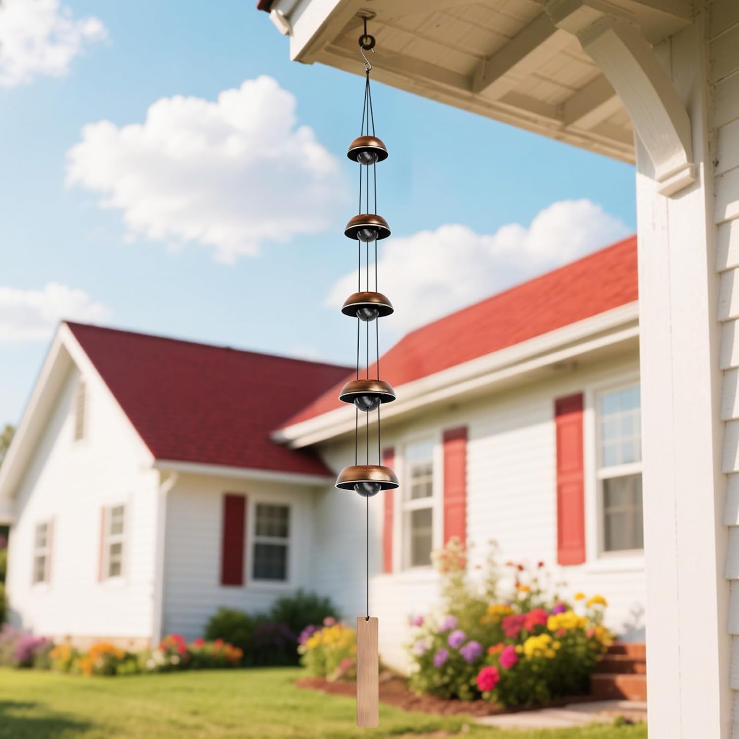 Features five bells of varying sizes for harmonious tones